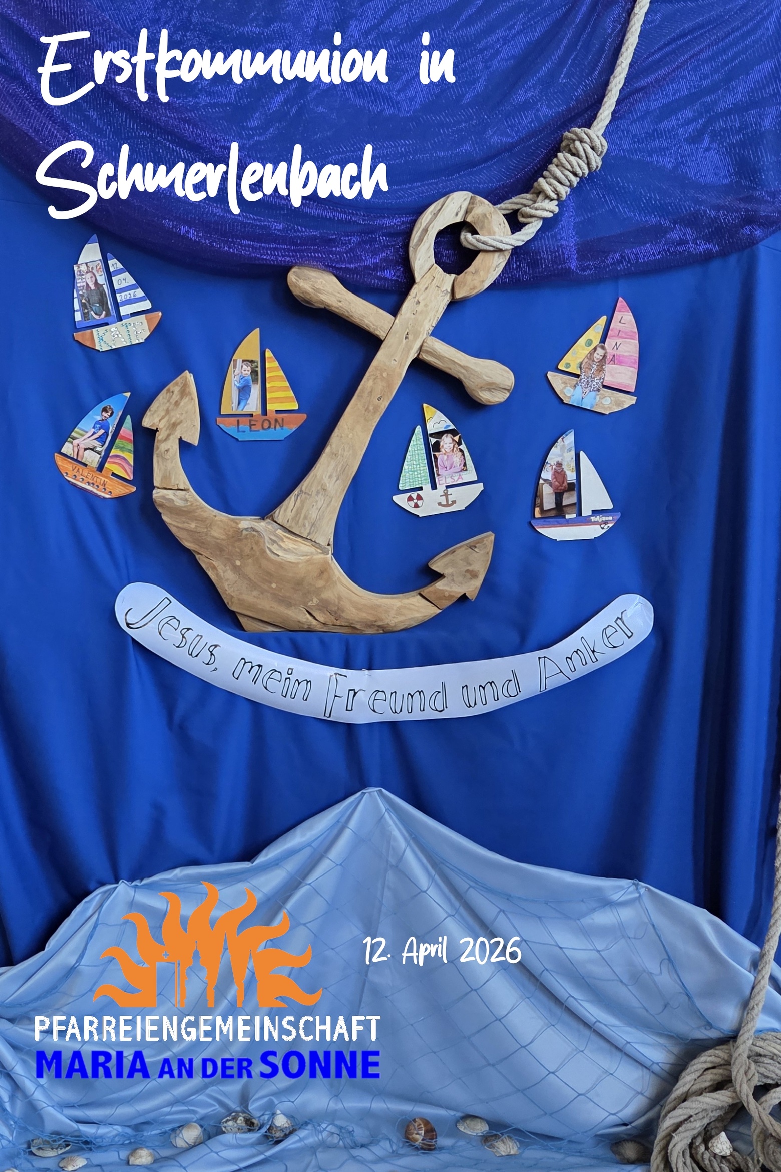 Das Symbol des Ankers hat die Feier begleitet, der uns versichert, dass wir in allen Turbulenzen des Lebens einen festen Anker bei IHM vertäut haben. Der Dankgottesdienst für alle Kommunionkinder unserer Pfarreiengemeinschaft findet am 20.4. um 10 Uhr in Hösbach St. Michael statt.